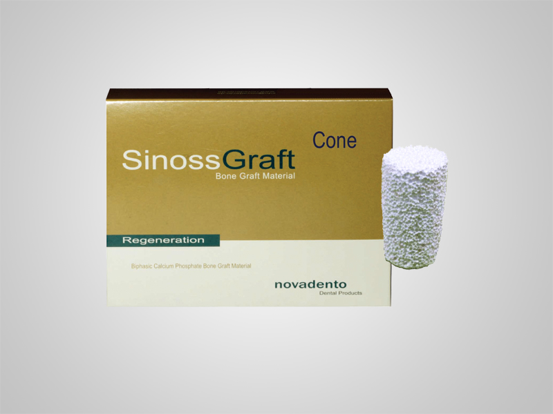 SinossGraft Cone wurde speziell für die Socket Preservation entwickelt. Für die Knochenregeneration nach Extraktion und bei schwierigen Defektsituationen, besonders bei nicht verschließbaren Kavitäten. Die Darreichungsform verhindert eine Abwanderung herkömmlicher Granulate. SinossGraft Cone besteht aus Hydroxylapatit und ß-TCP und ist in den Durchmessern 6,0 mm und 7,5 mm verfügbar. Beide Mineralphasen resorbieren kontrolliert. Indikationen: Nach Extraktion und bei schwierigen Defektsituationen, besonders bei nicht verschließbaren Kavitäten geeignet.