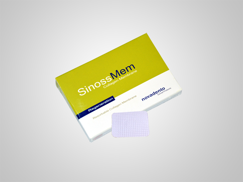 SinossMem ist eine natürliche Kollagenmembran und bietet in der initialen Heilungsphase trotz einer geringen Dicke von ca. 0,3 mm eine zuverlässige Barriere. Die Resorption beginnt nach ca. 6-8 Wochen und leistet eine langanhaltende Barrierefunktion von bis zu 4-6 Monaten ohne entzündliche Weichgewebereaktionen. Die auch im nassen Zustand vorhandene sehr hohe Reißfestigkeit ermöglicht